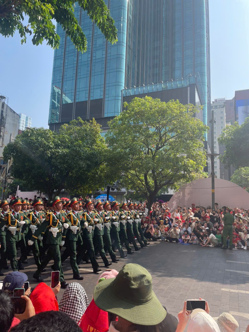 Khối nữ Quân nhạc Việt Nam bước vào lễ đài với giai điệu rộn ràng, nghiêm trang gợi nhớ những tiếng kèn khích lệ lòng người trong các chiến dịch xưa. Tiếp sau là Đoàn Nghi lễ Danh dự Quân Giải phóng nhân dân Trung Quốc, Quân đội nhân dân Lào, và Quân đội Hoàng gia Campuchia - ba đoàn quân bạn bè quốc tế, sát cánh cùng Việt Nam trong hành trình giành độc lập, nay tiếp tục cùng nhau vun đắp hòa bình khu vực.