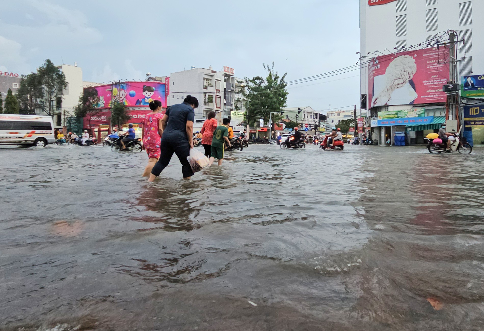 Đến hơn 18 giờ nước vẫn chưa rút hết.
