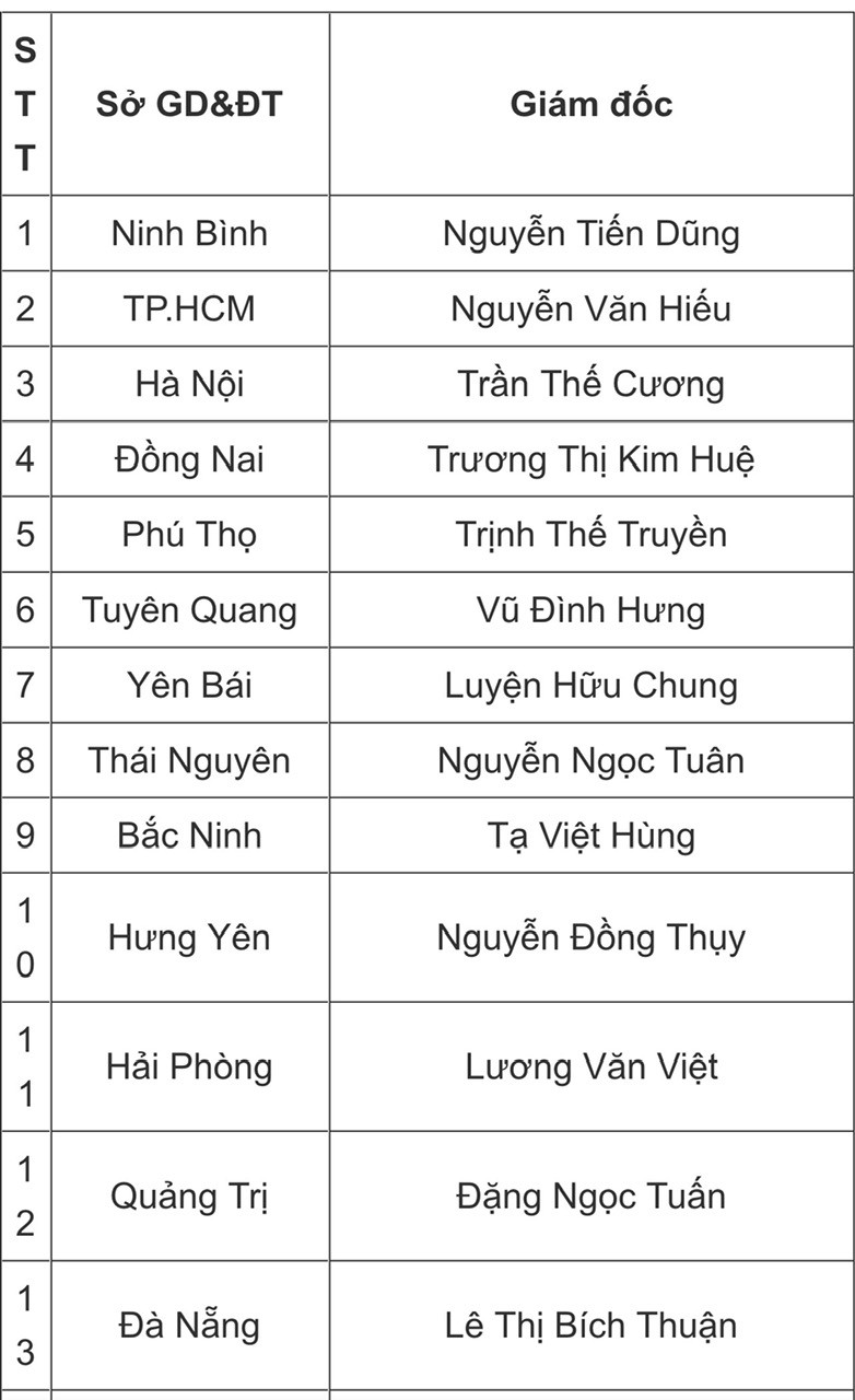 Sau khi thực hiện hợp nhất đơn vị hành chính một số tỉnh, thành trên cả nước, việc kiện toàn bộ máy tổ chức, đặc biệt trong lĩnh vực giáo dục, đã được các địa phương nhanh chóng triển khai. Tính đến đầu tháng 7/2025, danh sách Giám đốc và Phó Giám đốc phụ trách Sở Giáo dục và Đào tạo tại 34 tỉnh, thành phố đã được công bố, với 9 nữ và 25 nam đảm nhiệm các vị trí chủ chốt.
