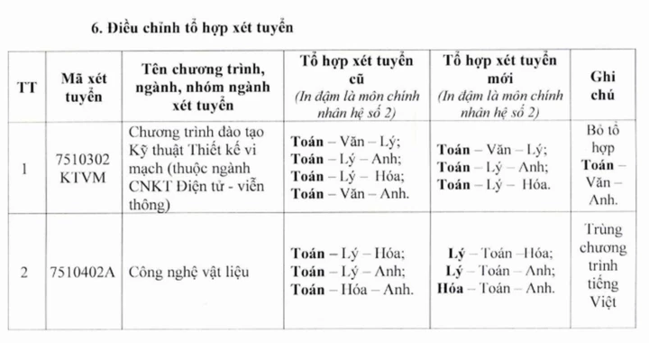 Ngành Công nghệ vật liệu thay đổi môn chính nhân hệ số 2: từ Toán sang Vật lý hoặc Hóa học.