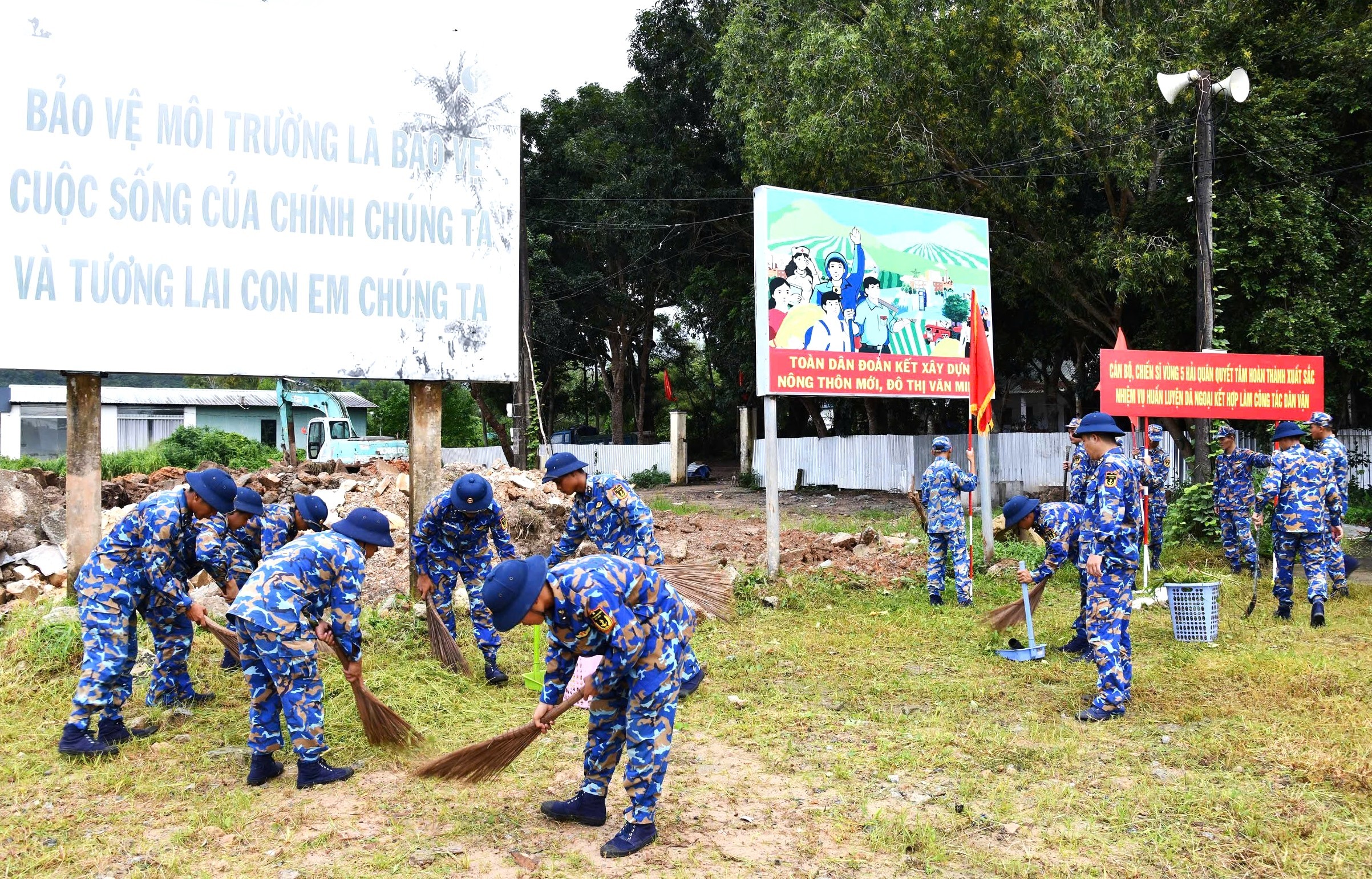 Trung tuần tháng 7, khi mùa mưa ở đảo ngọc Phú Quốc đang vào giai đoạn cao điểm, những cơn mưa rào nặng hạt nối nhau trút xuống, đường sá trơn trượt, cây cối rậm rạp, lối xóm lầy lội. Thế nhưng, trên những con đường đất đỏ quanh co thuộc khu phố Suối Mây, cán bộ, chiến sĩ Vùng 5 Hải quân vẫn hiện diện, âm thầm, cần mẫn góp sức cùng bà con làm đẹp xóm làng.