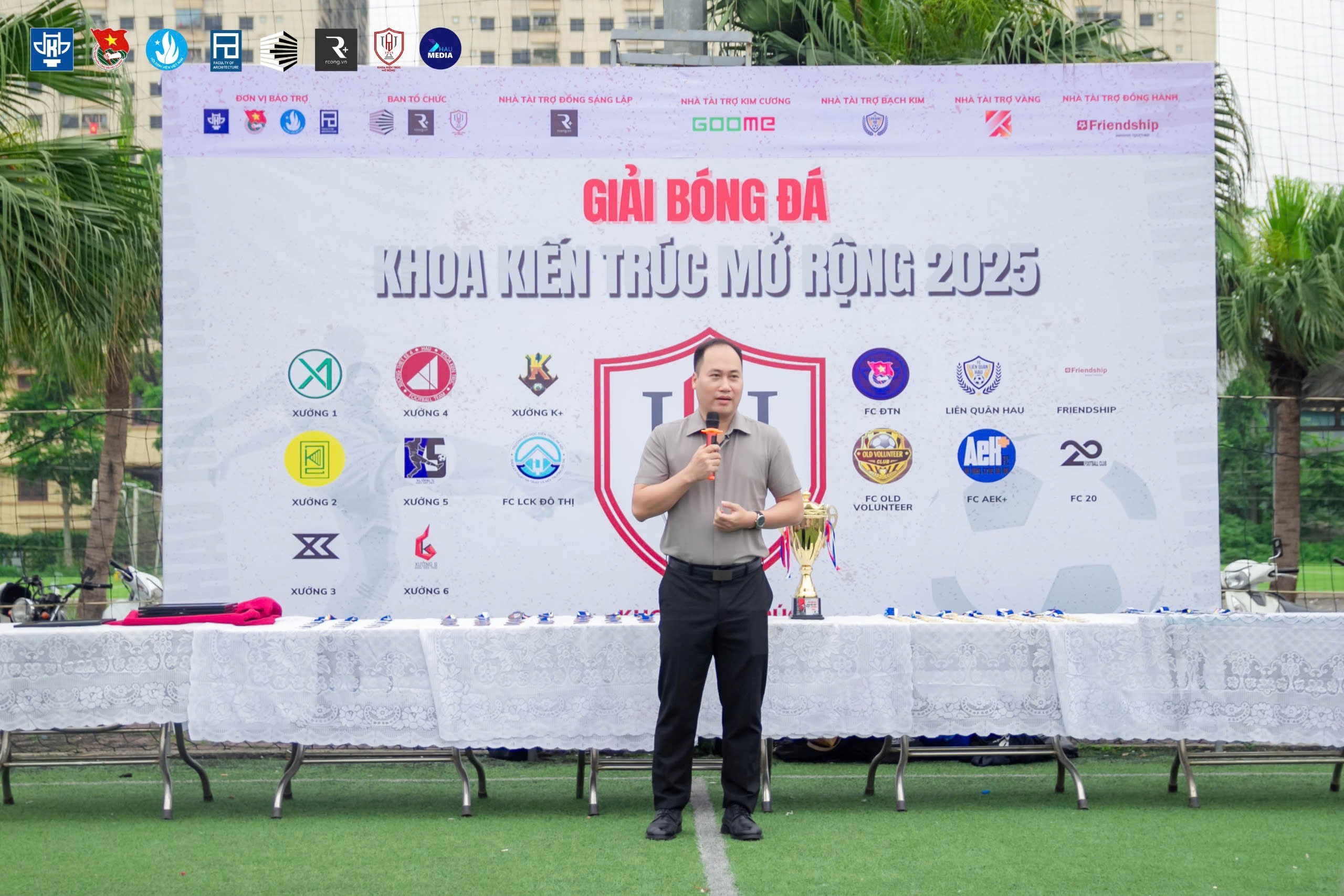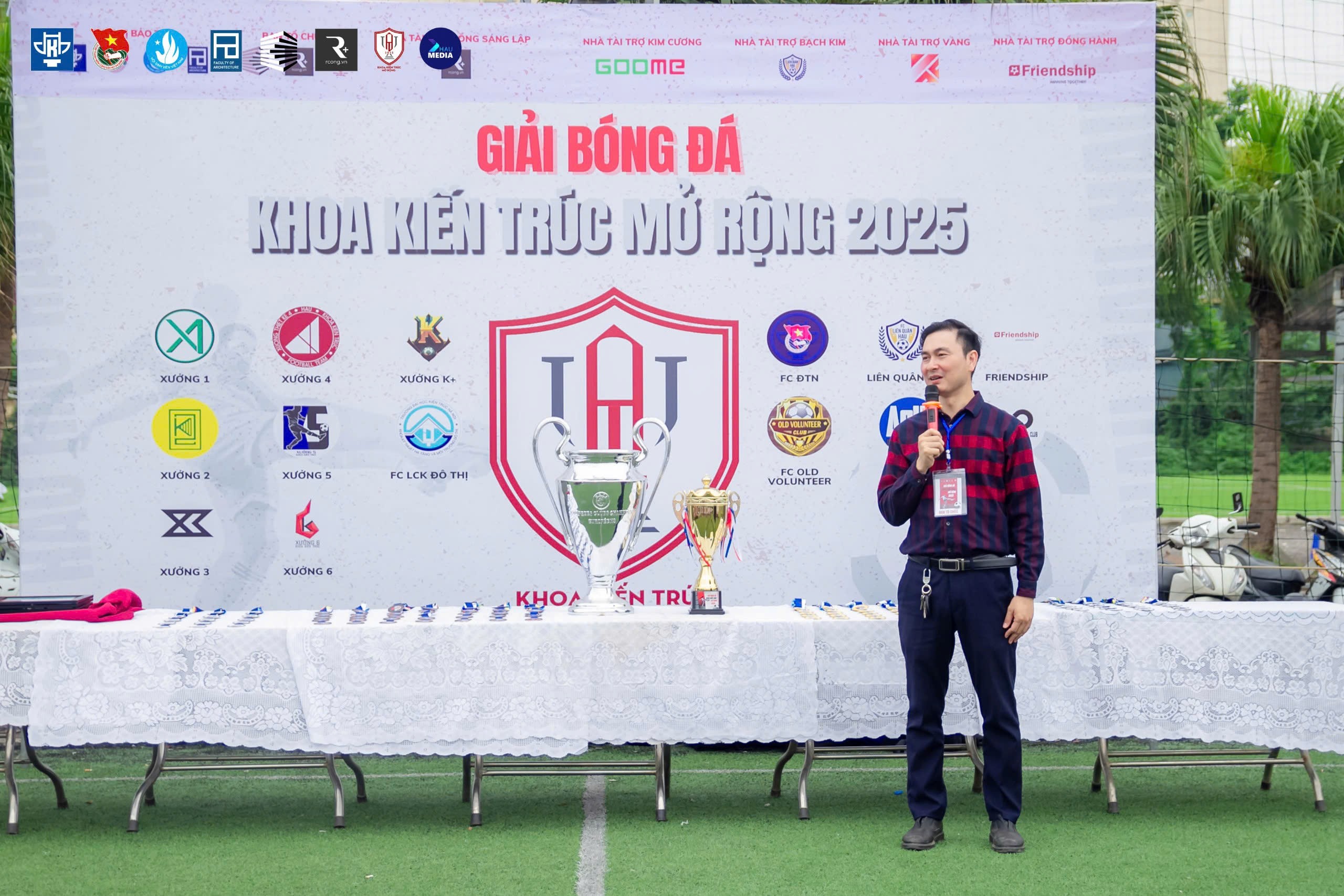 TS.KTS. Vương Hải Long, Trưởng khoa Kiến trúc, Trưởng Ban tổ chức giải, khẳng định: “Giải bóng đá Khoa Kiến trúc mở rộng không chỉ là một sân chơi thể thao, mà còn là không gian kết nối cộng đồng Kiến trúc – Xây dựng, là cầu nối giữa nhà trường với các thế hệ sinh viên và doanh nghiệp. Từng bước đi của giải đấu đều được chúng tôi tổ chức kỹ lưỡng, để vừa đảm bảo chuyên môn, vừa nuôi dưỡng tinh thần đồng hành, trách nhiệm và tự hào về nghề.”