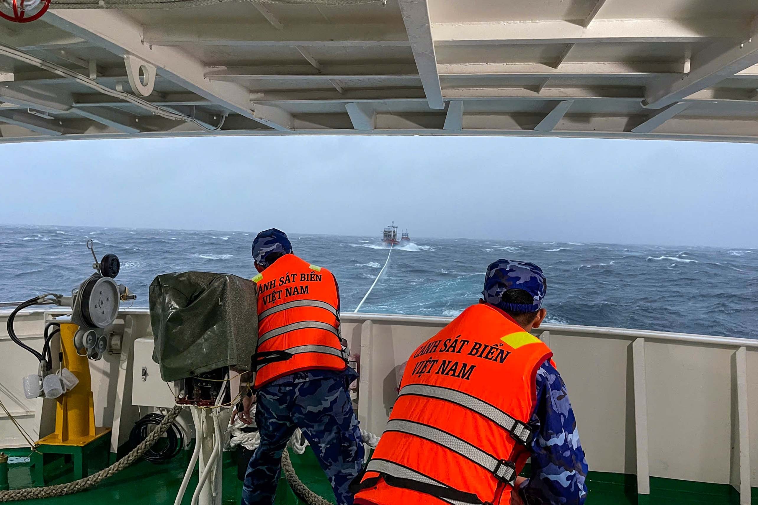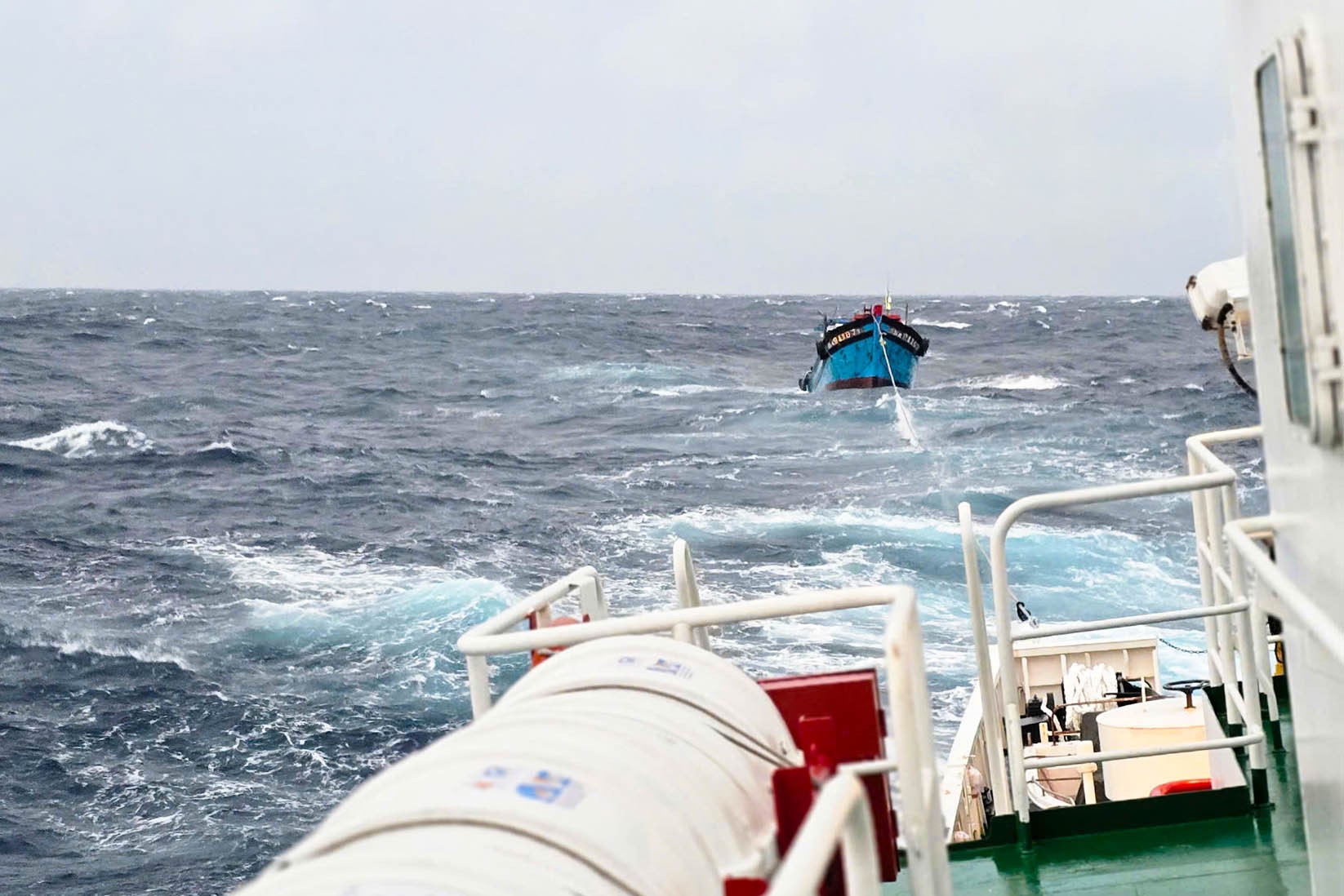Giữa biển động điên cuồng, sóng dữ liên tục đẩy hai con tàu ra xa. Mỗi nỗ lực quăng dây cứu sinh là một lần các chiến sĩ phải gồng mình trên boong tàu trơn trượt, chòng chành như võng đưa. Đến 17 giờ 50, tàu 319 mới tiếp cận được mục tiêu. Bằng bản lĩnh và kinh nghiệm, các anh đã vượt sóng, áp sát và buộc chặt những sợi dây sinh tử, bắt đầu cuộc lai dắt hai con tàu xuyên qua bão tố.