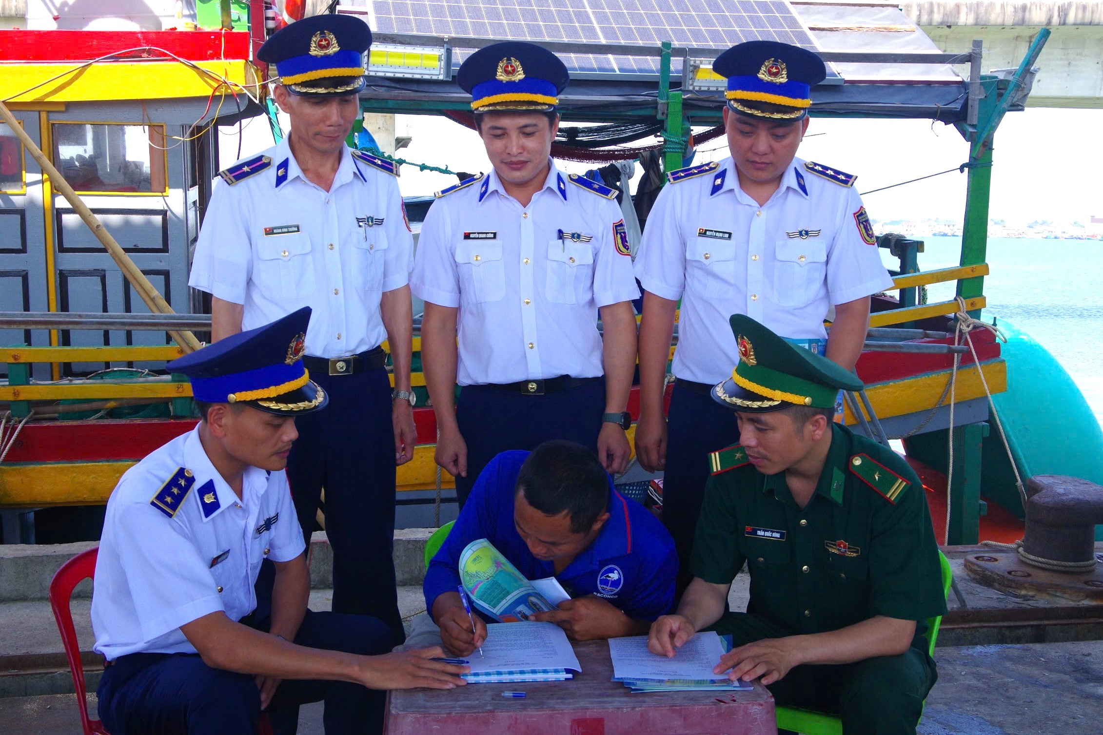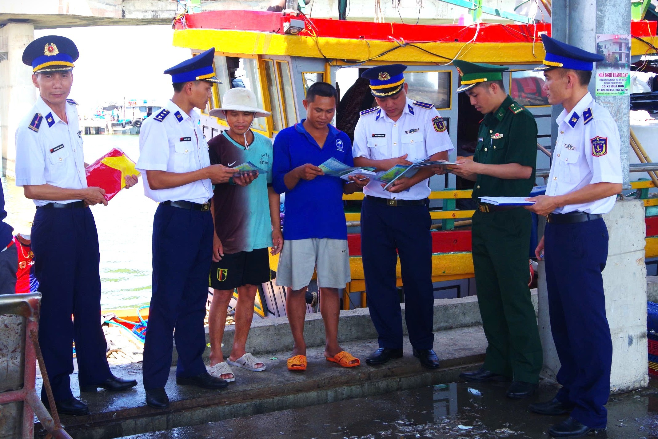 Vận động ngư dân ký cam kết chấp hành pháp luật khi hành nghề, khai thác đánh bắt thủy hải sản, không xâm phạm vùng biển nước ngoài và duy trì giám sát hành trình khi hoạt động trên biển. Vừa khai thác, đánh bắt vừa tham gia đấu tranh bảo vệ chủ quyền biển, đảo Tổ quốc.
