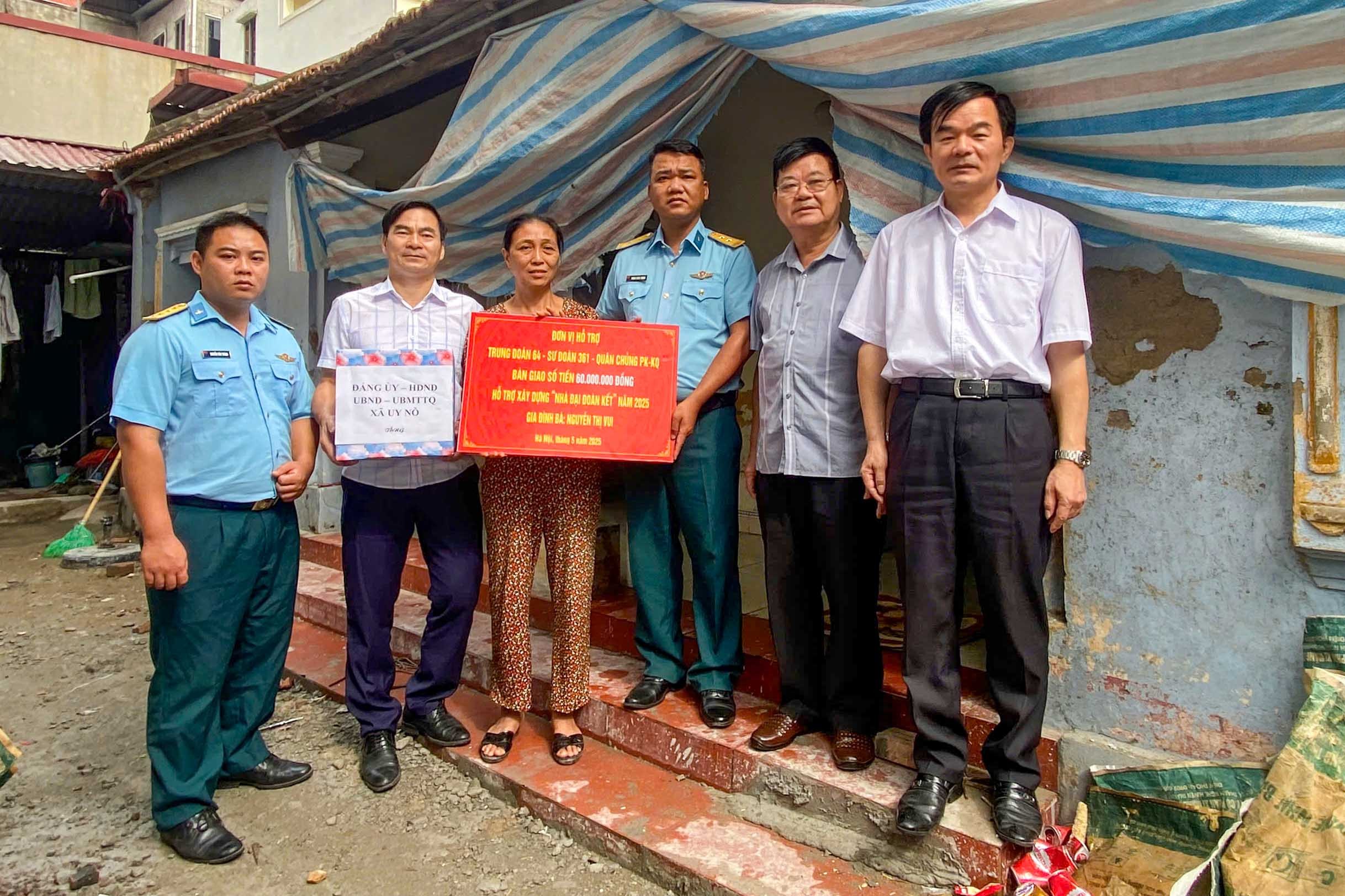 Buổi lễ bàn giao diễn ra trong không khí ấm tình quân dân, với sự hiện diện của Trung tá Đặng Đình Thịnh, Phó Chính ủy Trung đoàn 64, cùng đại diện lãnh đạo Đảng ủy, HĐND, UBND, Ủy ban MTTQ Việt Nam xã Uy Nỗ và đông đảo bà con lối xóm. Không chỉ trao số tiền hỗ trợ, các đơn vị đồng hành và địa phương còn gửi tặng bà Vui những phần quà thiết thực, nhân thêm niềm vui và sự sẻ chia nồng ấm.