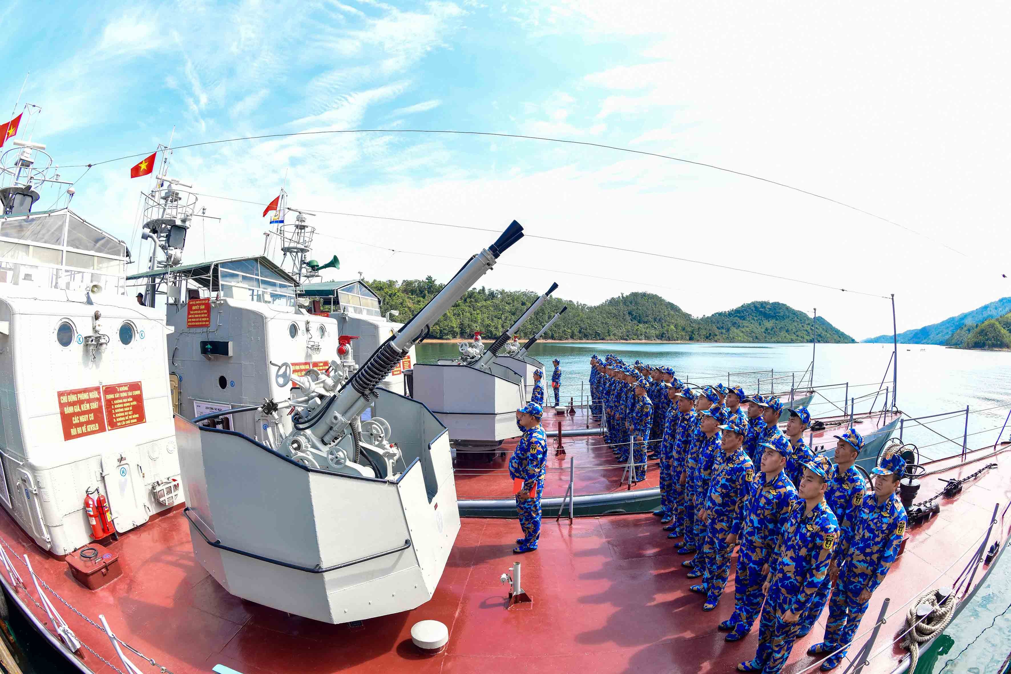 06 giờ 00 sáng. đất liền còn chìm trong sương sớm, trên boong các tàu tuần tiễu chủ lực, Tàu 201, Tàu 202, Tàu 205 của Hải đội 7 đã vang rộn bước chân CBCS. Nơi trung tâm tàu, lá cờ Tổ quốc tung bay kiêu hãnh. Trong tiếng Quốc ca trầm hùng, lễ chào cờ đầu ngày mới diễn ra trang nghiêm, lan tỏa nguồn năng lượng và khí thế mạnh mẽ đến từng người lính.