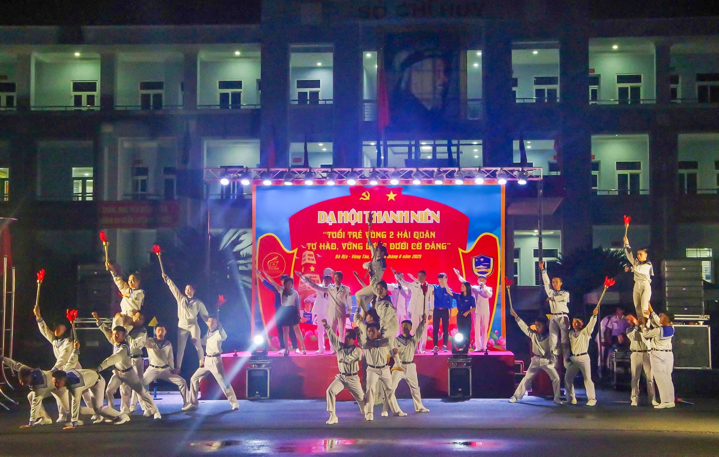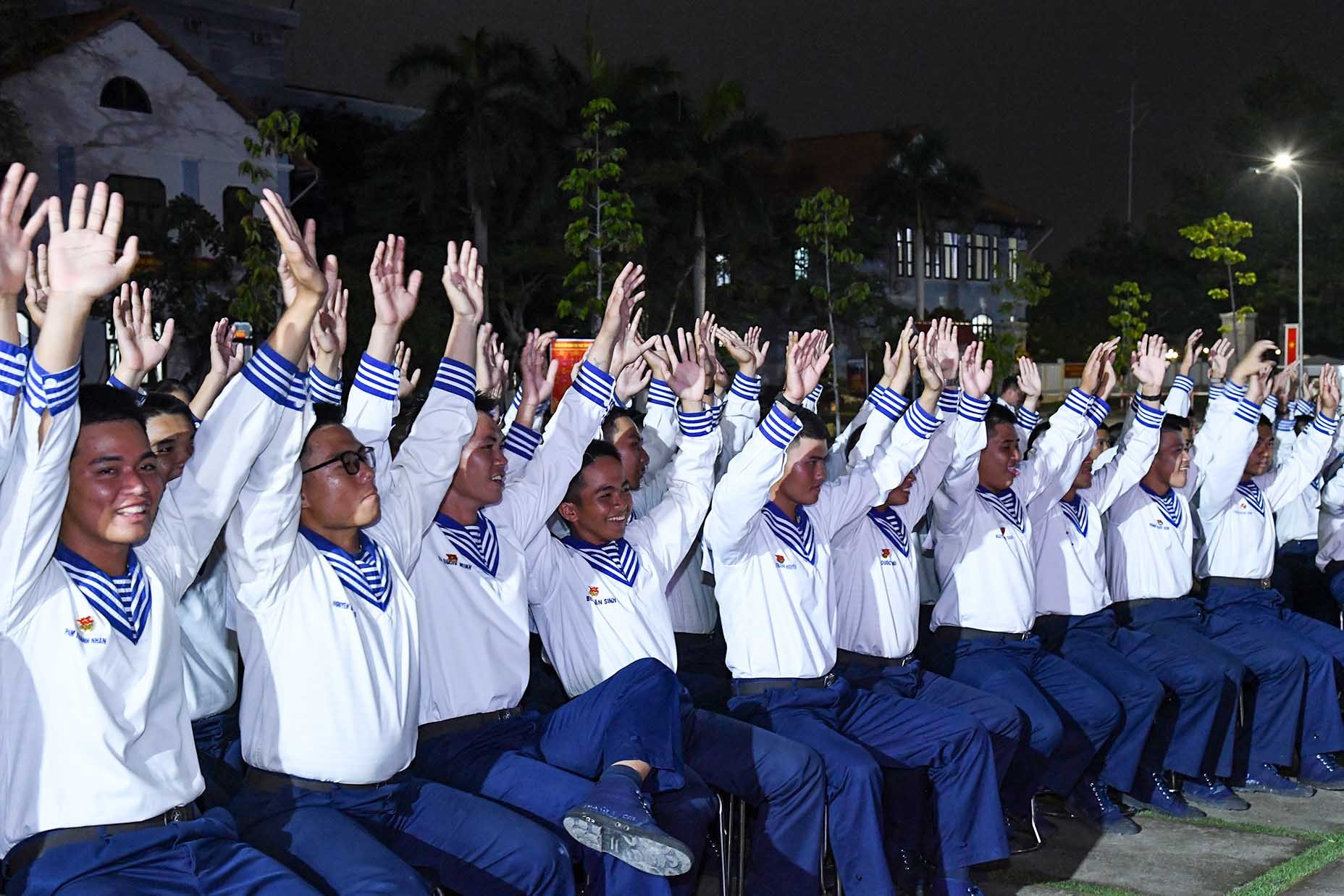 Đêm dạ hội không chỉ có âm nhạc và ánh sáng, mà còn là một lời tuyên thệ mạnh mẽ của tuổi trẻ Vùng 2 Hải quân. Những ca khúc như “Lá cờ Đảng”, “Tổ quốc gọi tên mình” vang lên như một bản hùng ca thời bình, khẳng định tinh thần thép và trái tim nóng của người lính biển.