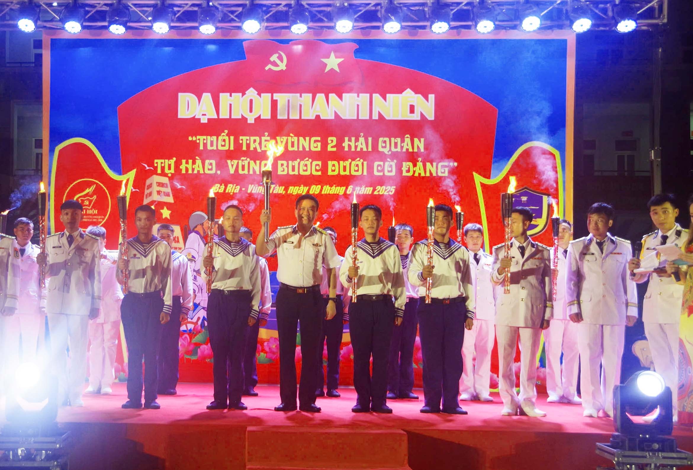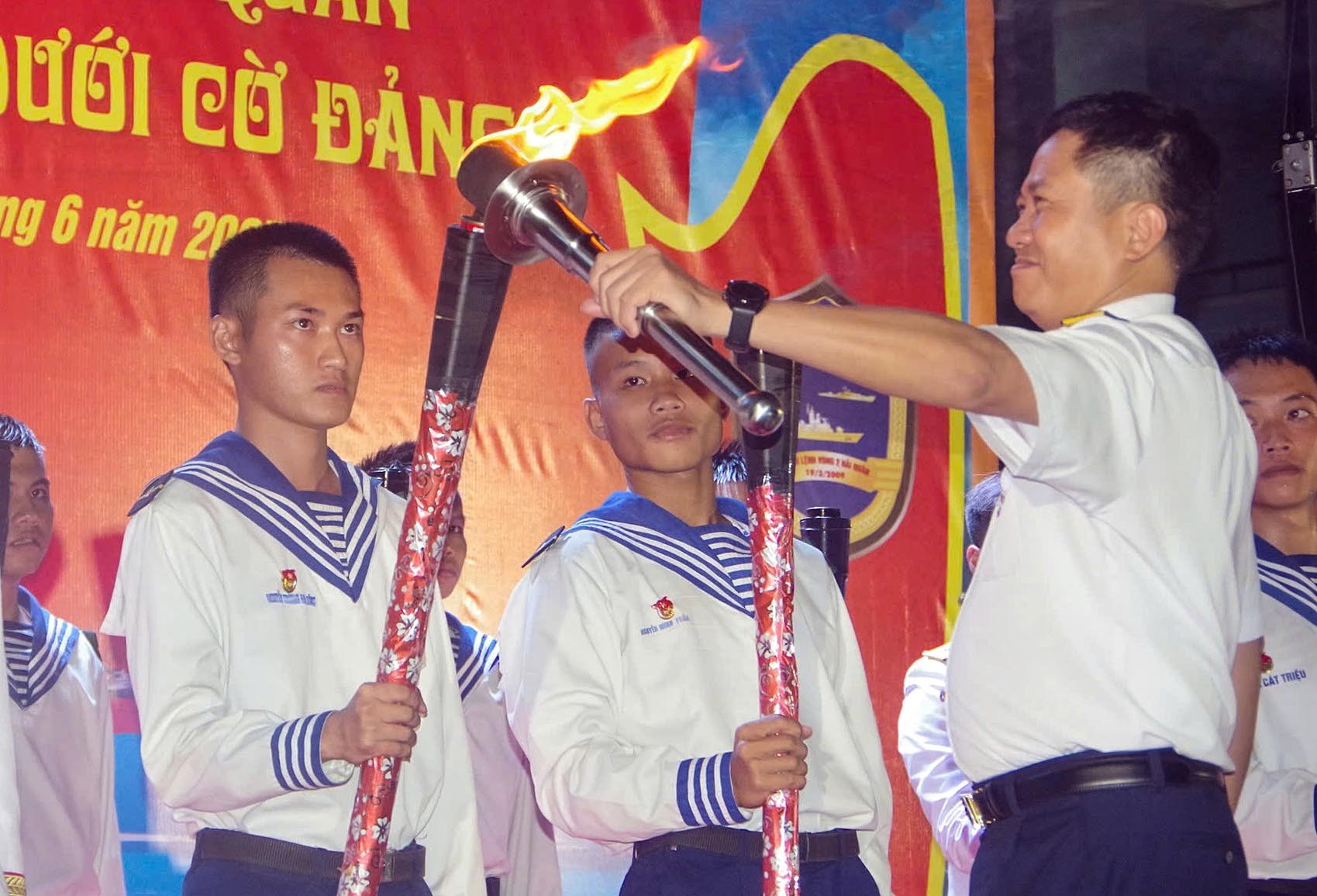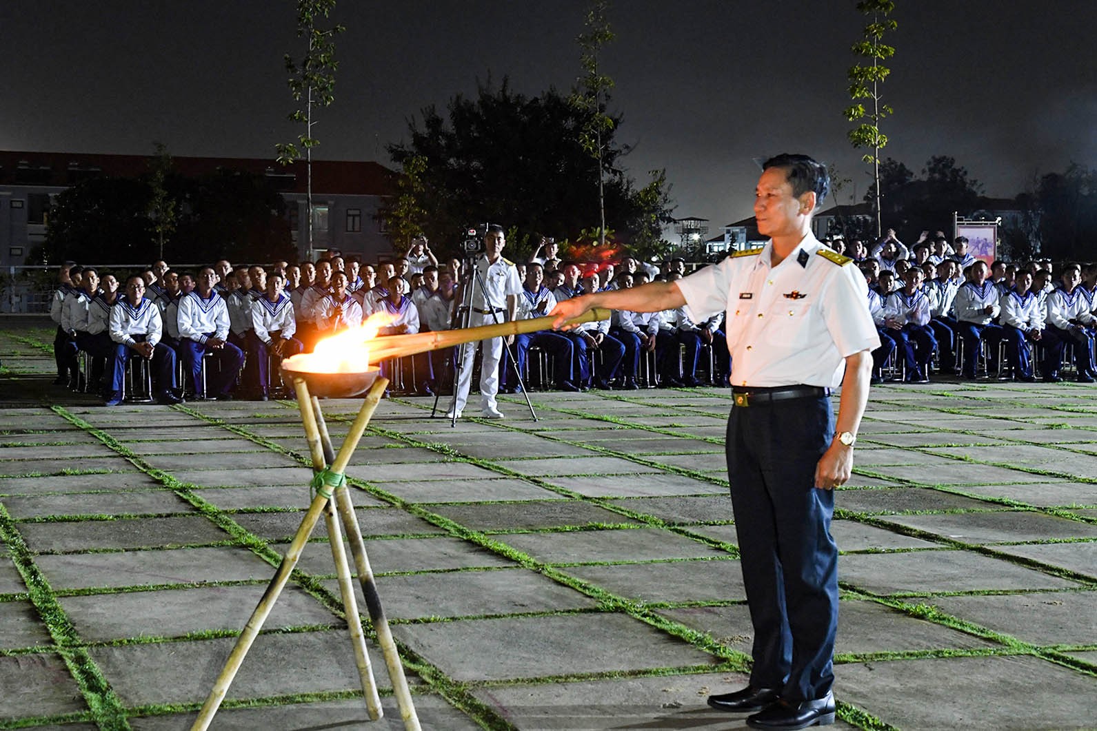 Tại điểm cầu Lữ đoàn 167 (TP. Vũng Tàu), không khí trở nên trang nghiêm khi ngọn đuốc truyền thống được rước từ Khuôn viên Văn hóa Vùng, nơi lưu giữ ký ức về các anh hùng liệt sĩ Hải quân về đài lửa trung tâm. Khoảnh khắc ngọn lửa thiêng bùng cháy không chỉ thắp sáng không gian mà còn khơi dậy trong lòng mỗi người lính trẻ ngọn lửa của lý tưởng cách mạng và trách nhiệm kế thừa.
