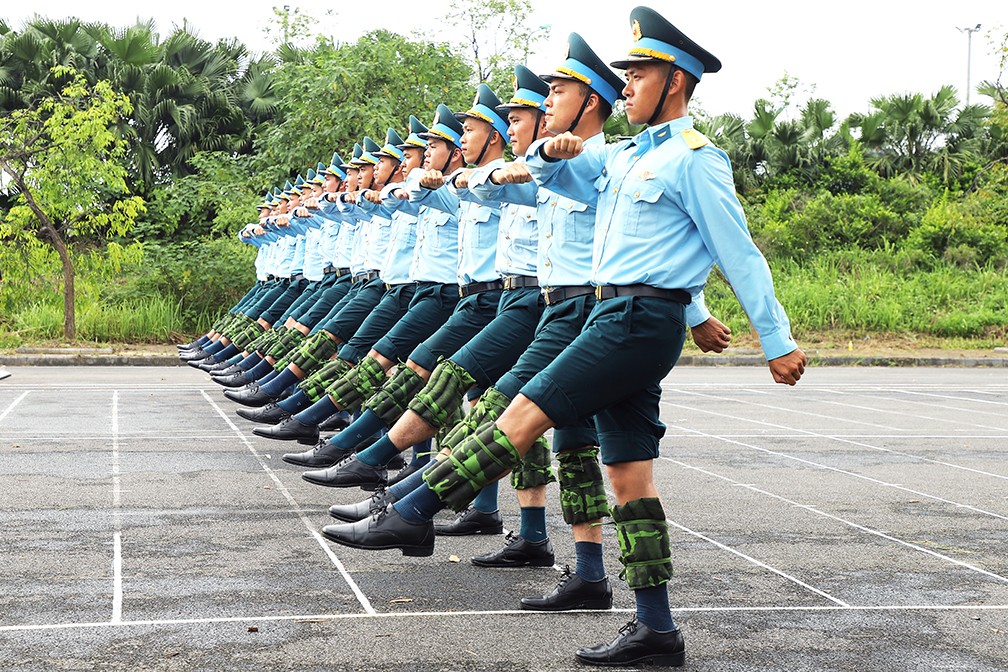 Những hàng quân đầu tiên của khối đi Phòng không – Không quân tiến vào vị trí tập kết. Cả không gian như bừng tỉnh theo tiếng dậm bước mạnh mẽKhối đứng tạo hình đội ngũ với 160 chiến sĩ, cao từ 1m75 trở lên, đứng nghiêm bất động suốt hàng giờ liền trong tư thế chuẩn mựcKhối đứng phải tập luyện từ 3-4 tiếng mỗi lượt tập và mỗi ngày phải luyện tập 4 lượt nên các chiến sĩ phải có ý chí, sức khoẻ và sự tập trung cao nhấtMỗi động tác quay phải, quay trái đều được thực hiện đồng loạt, chính xác như một khối thép được lập trình là kết quả của hàng trăm giờ luyện tập với ý chí quyết tâm cao nhấtGương mặt đanh thép, ánh mắt kiên cường, từng chiến sĩ là đại diện cho tinh thần kỷ luật thép của Quân chủng Phòng không – Không quânKhối đi mang tạ 2,5kg mỗi chân, thực hiện di chuyển đội hình liên tục suốt buổi sáng để tạo độ trầm, dứt khoát, mạnh mẽ và nâng cơ chân tay cứng chắc cho chiến sỹ luyện tập“Từng bước chân của chúng tôi là nhịp điệu bản hùng ca dân tộc”, một chiến sĩ nói trong lúc mồ hôi vẫn còn chảy trên máCán bộ huấn luyện đi sát đội hình, điều chỉnh tư thế từng người. Khẩu lệnh dứt khoát như tiếp lửa cho cả khốiDưới cái nắng chói chang của mùa hè, nhiệt độ có lúc lên đến 37 độ, mồ hôi thấm áo, nhưng đội hình vẫn giữ vững tư thế – như thể nắng nóng không tồn tạiTrong giờ nghỉ 15 phút, các chiến sĩ tranh thủ lau mồ hôi, xoa bóp chân, chỉnh quân phục chuẩn bị cho vòng tập tiếp theoDù mồ hôi ướt áo dưới cái nắng như thiêu như đốt của mùa hè, nhưng nụ cười vẫn luôn nở trên môi các chiến sĩ trong giờ nghỉ giải laoCác chiến sỹ tiếp tục tập luyện nghi thức chào cờ khi tiến qua Lễ đài