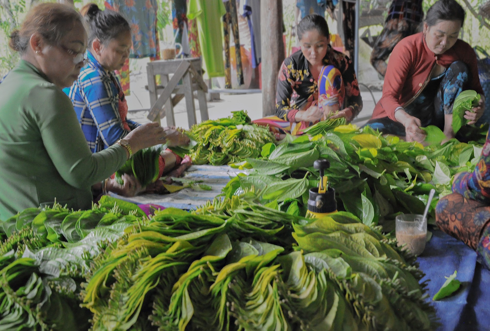 “Trong hợp tác xã, các thành viên sở hữu từ 3 – 5 công đất trồng trầu (1 công tương đương 1.000 m2, trồng khoảng 1.000 nọc trầu). Trung bình hàng tháng, mỗi công đất trồng trầu cho thu hoạch khoảng 2.500 ốp trầu, ông Đời cho biết thêm.