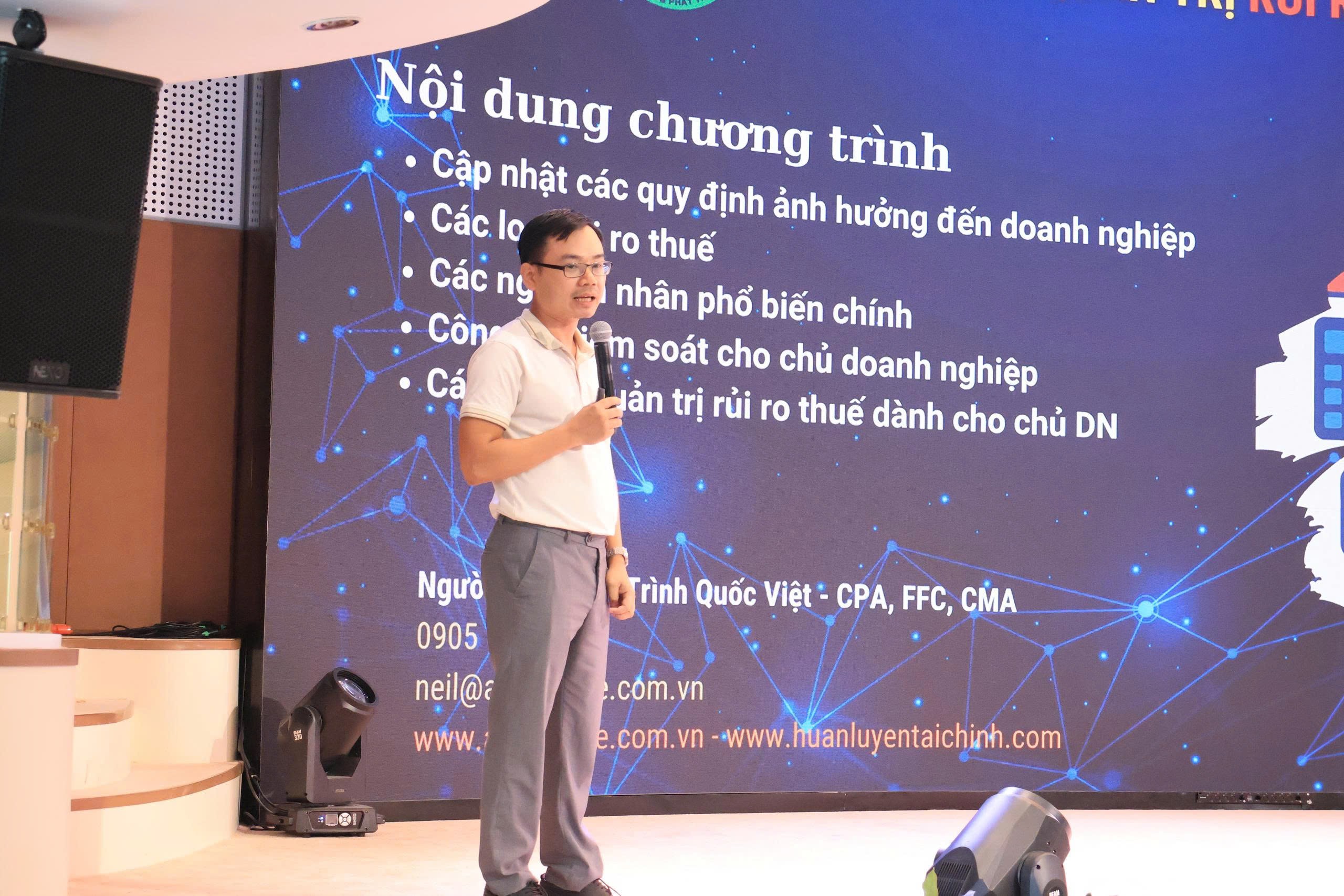 Trong phần trình bày chuyên đề, diễn giả Trình Quốc Việt đã phân tích các nguy cơ thường gặp khiến doanh nghiệp có thể bị ấn định thuế hoặc xử phạt hành chính, như việc sử dụng dòng tiền cá nhân không rõ nguồn gốc cho các khoản chi doanh nghiệp; khoản vay không tính lãi giữa giám đốc và công ty; hoặc tồn kho kéo dài không được xử lý đúng quy trình. Qua đó, chuyên gia tư vấn các phương án xử lý đúng luật, như hợp pháp hóa khoản vay bằng biên bản tăng vốn điều lệ, lập kế hoạch giải trừ hàng tồn kho, hoặc minh bạch hóa dòng tiền đầu tư – tránh việc cơ quan thuế hiểu nhầm là doanh thu không kê khai. Các câu hỏi thực tế từ doanh nghiệp đã được diễn giả giải đáp cụ thể, giúp người tham dự nhận diện rõ hơn các rủi ro và lỗ hổng kế toán – tài chính có thể xảy ra trong quá trình kinh doanh.