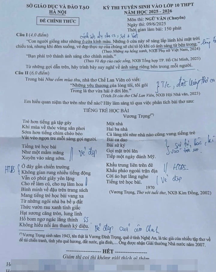 Trong sáng nay (9/6), các thí sinh Hà Nội dự thi vào lớp 10 chuyên đã hoàn thành bài thi môn chuyên với thời gian làm bài 150 phút.