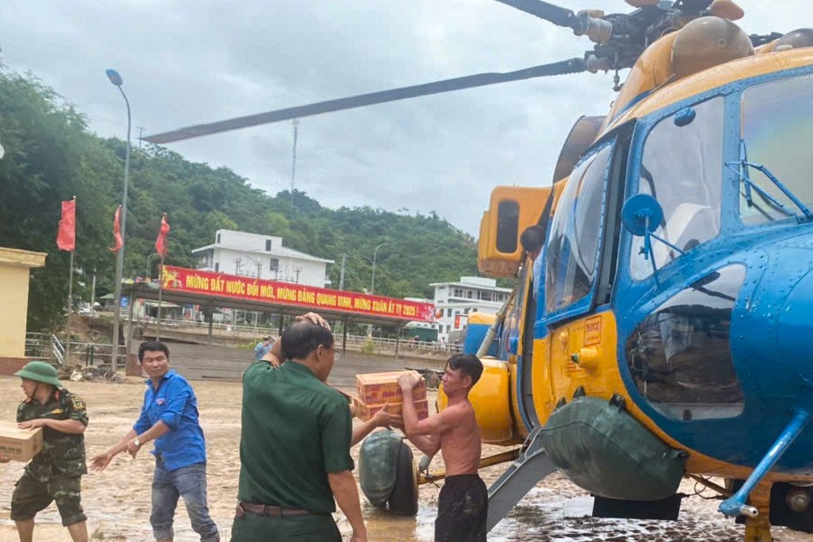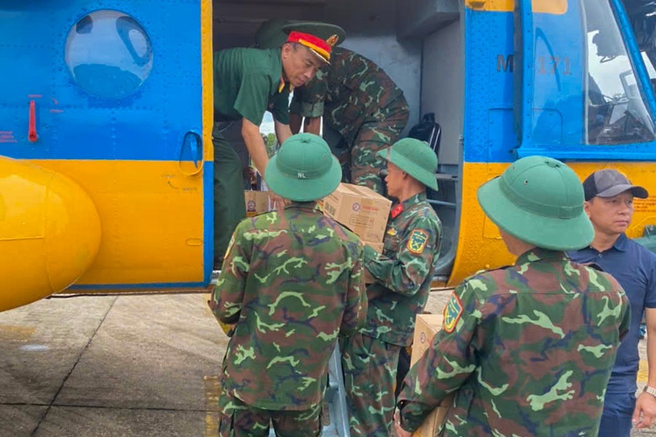 Tại sân bay Hòa Lạc sáng 24/7, trực thăng Mi-171 mang số hiệu SAR-03 do tổ bay của Trung đoàn 916 điều khiển, sẵn sàng thực hiện nhiệm vụ vận chuyển hàng cứu trợ tới các vùng ngập lụt ở Nghệ An.Cán bộ, chiến sĩ khẩn trương bốc xếp hơn 2 tấn hàng gồm mì tôm, áo phao, chăn màn, thiết bị cứu nạn lên trực thăng. Mỗi kiện hàng mang theo cả tình cảm từ hậu phương gửi đến người dân vùng lũ.Hàng cứu trợ được chất đầy khoang máy bayTrực thăng cất cánh lúc, vượt qua thời tiết xấu và địa hình hiểm trở. Tổ bay phải bay thấp, rà soát khu vực để tiếp cận chính xác các điểm tiếp tế.Máy bay tiếp cận xã Mường Xén, nơi quốc lộ bị chia cắt hoàn toàn. Hàng cứu trợ được thả xuống vị trí an toàn đã được cán bộ địa phương chuẩn bị trước.Tại điểm tiếp nhận, lực lượng địa phương cùng người dân nhanh chóng tổ chức vận chuyển hàng bằng tay vào các cụm dân cư đang bị cô lậpTình quân dân trở thành sức mạnh vượt lên hoàn cảnhMáy bay quay lại sân bay Vinh để tiếp tục chuyến thứ hai trong ngày. Còn nhiều vùng lũ sâu khác đang chờ những cánh bay tiếp theo. Sự sẵn sàng, quyết đoán và trái tim người lính chính là nguồn tiếp sức mạnh mẽ nhất trong thiên tai