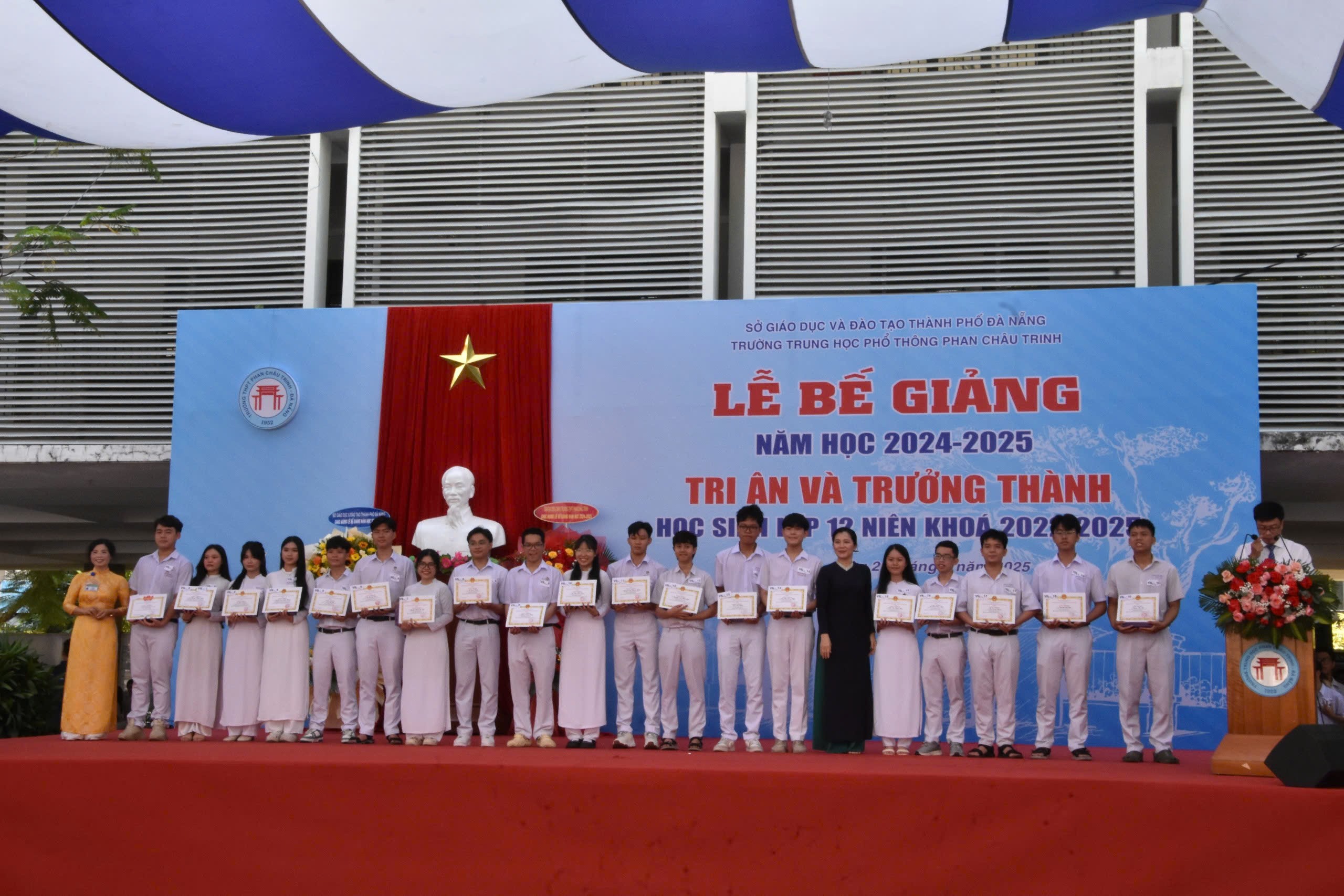Buổi lễ tiếp tục với phần tuyên dương, trao thưởng cho các học sinh có thành tích xuất sắc trong học tập, rèn luyện và hoạt động phong trào. Những tràng pháo tay vang lên không chỉ để chúc mừng mà còn là sự ghi nhận nỗ lực của cả thầy và trò trong suốt một năm học vừa qua.