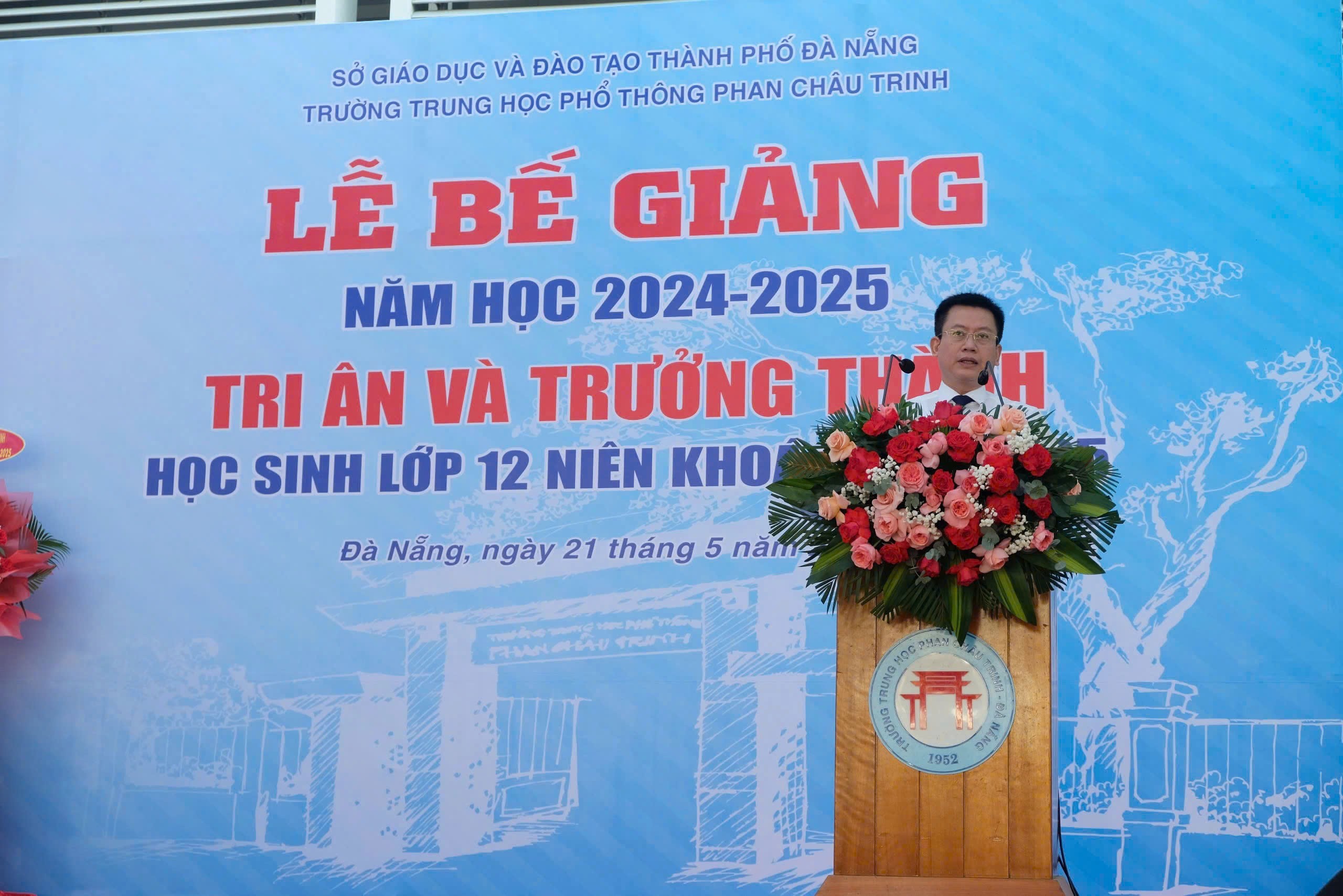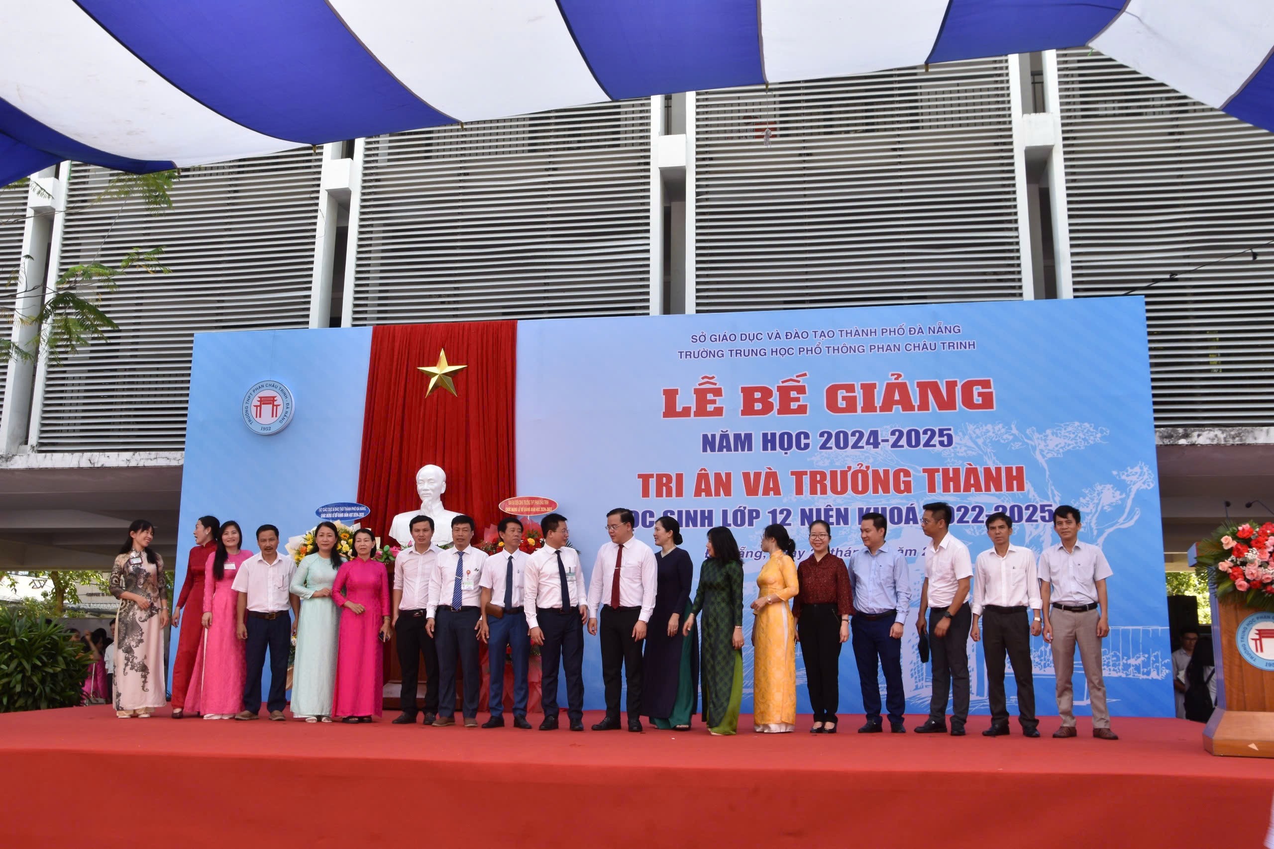 Tham dự có nhà giáo Trần Nguyễn Minh Thành – Phó Giám đốc Sở GD&ĐT Đà Nẵng, PGS.TS Đặng Hữu Mẫn – Trưởng phòng Đào tạo Trường ĐH Kinh tế, ĐH Đà Nẵng, thầy Nguyễn Quang Hưng – Bí thư Đảng bộ, Hiệu trưởng nhà trường. Ngoài ra, buổi lễ còn có sự hiện diện của các tổ chức đồng hành, ban đại diện cha mẹ học sinh, cùng toàn thể cán bộ, giáo viên và hơn 4000 học sinh các khối lớp.
