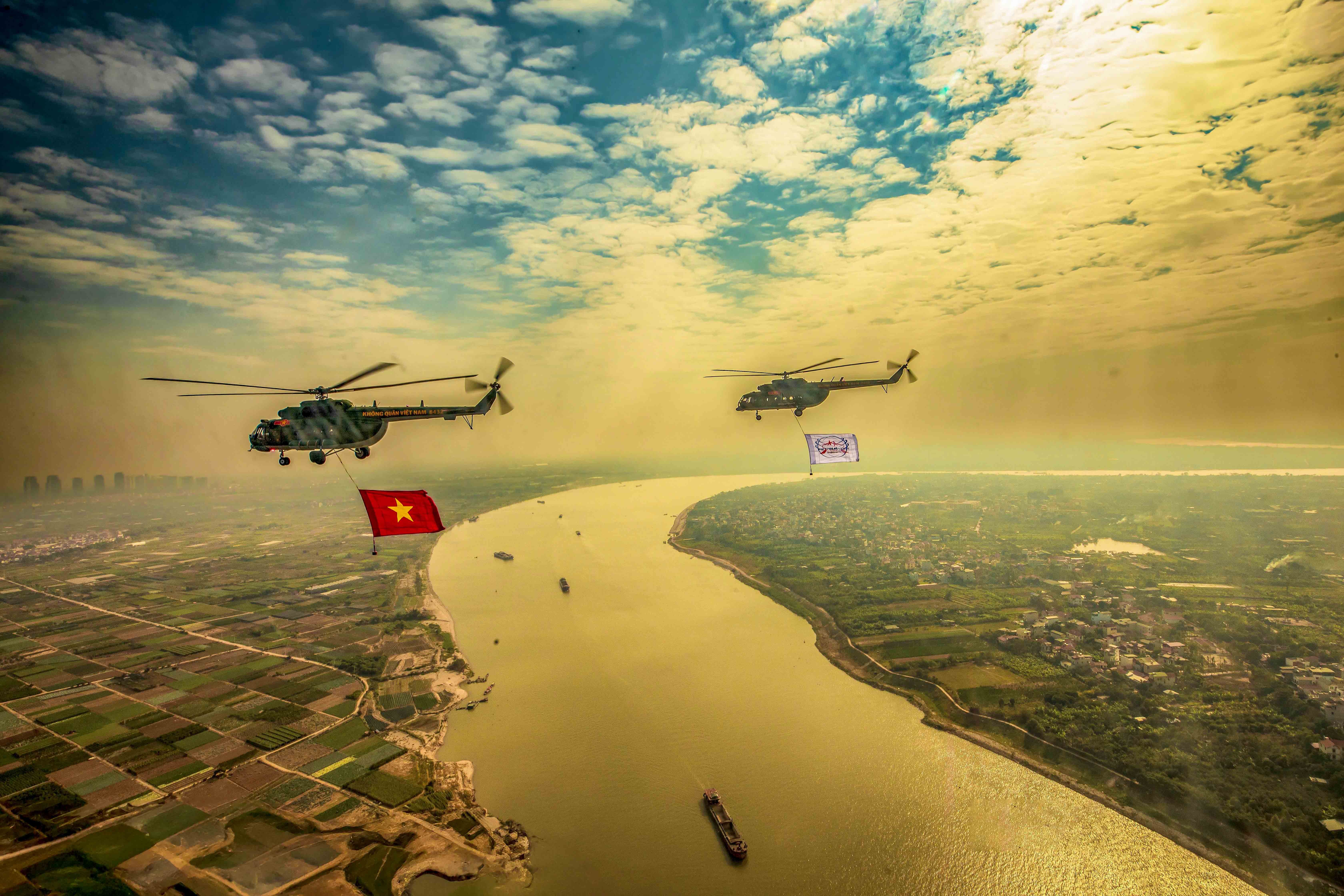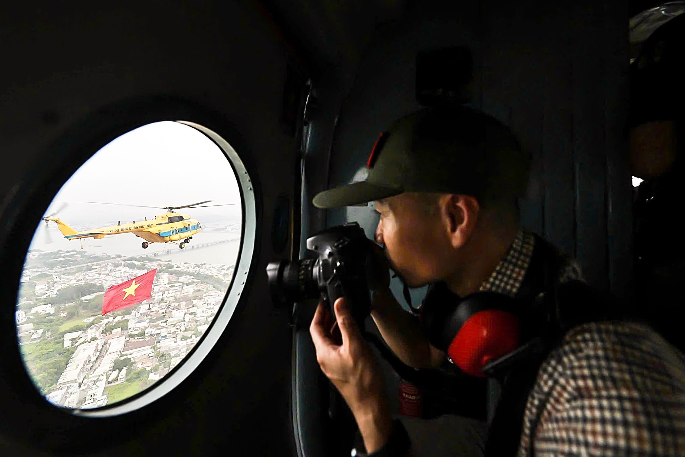"Chúng tôi không phải lính lái tiêm kích, không được ngồi trên buồng lái Su-30MK2, càng không thể điều khiển chiến cơ nhào lộn giữa tầng mây. Nhưng chỉ cần được ngồi ở cửa trực thăng, nhìn đội hình máy bay lướt qua dưới làn sáng bình minh, lòng tôi đã đủ bồi hồi, thấy mình cũng đang góp một phần nhỏ vào bức tranh lớn của đất nước," anh chia sẻ.