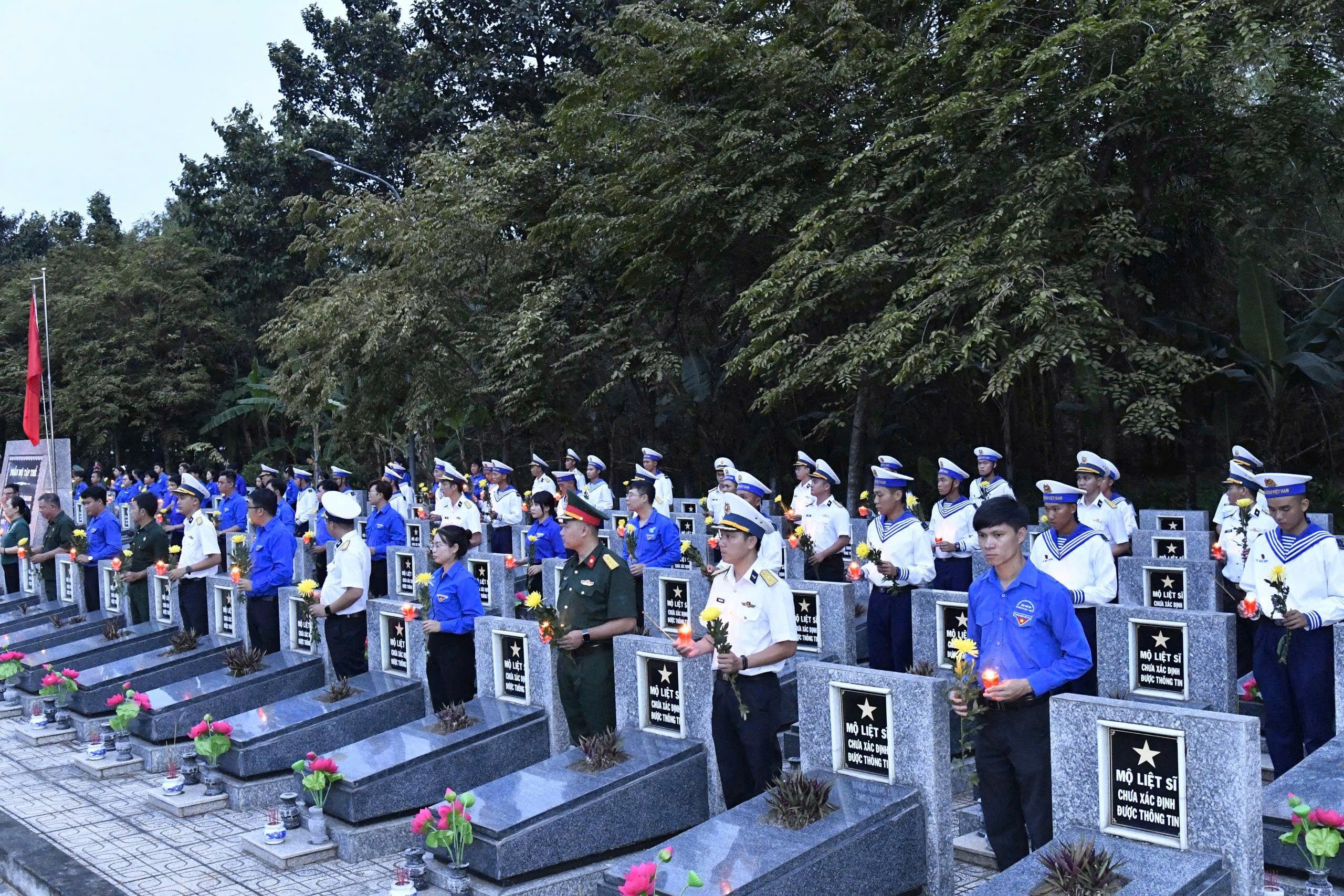 Tại Đồng Nai, Trung tâm Bảo đảm Kỹ thuật và Trung tâm Huấn luyện Vùng 2 đã phối hợp với các đoàn xã Đại Phước, xã Phước An và huyện Nhơn Trạch tổ chức thắp nến tri ân tại Nghĩa trang Liệt sĩ Nhơn Trạch. Với sự tham gia của 35 cán bộ, đoàn viên thanh niên, buổi lễ diễn ra trong không khí thành kính, trang trọng, để lại dấu ấn sâu đậm trong lòng người dân địa phương.