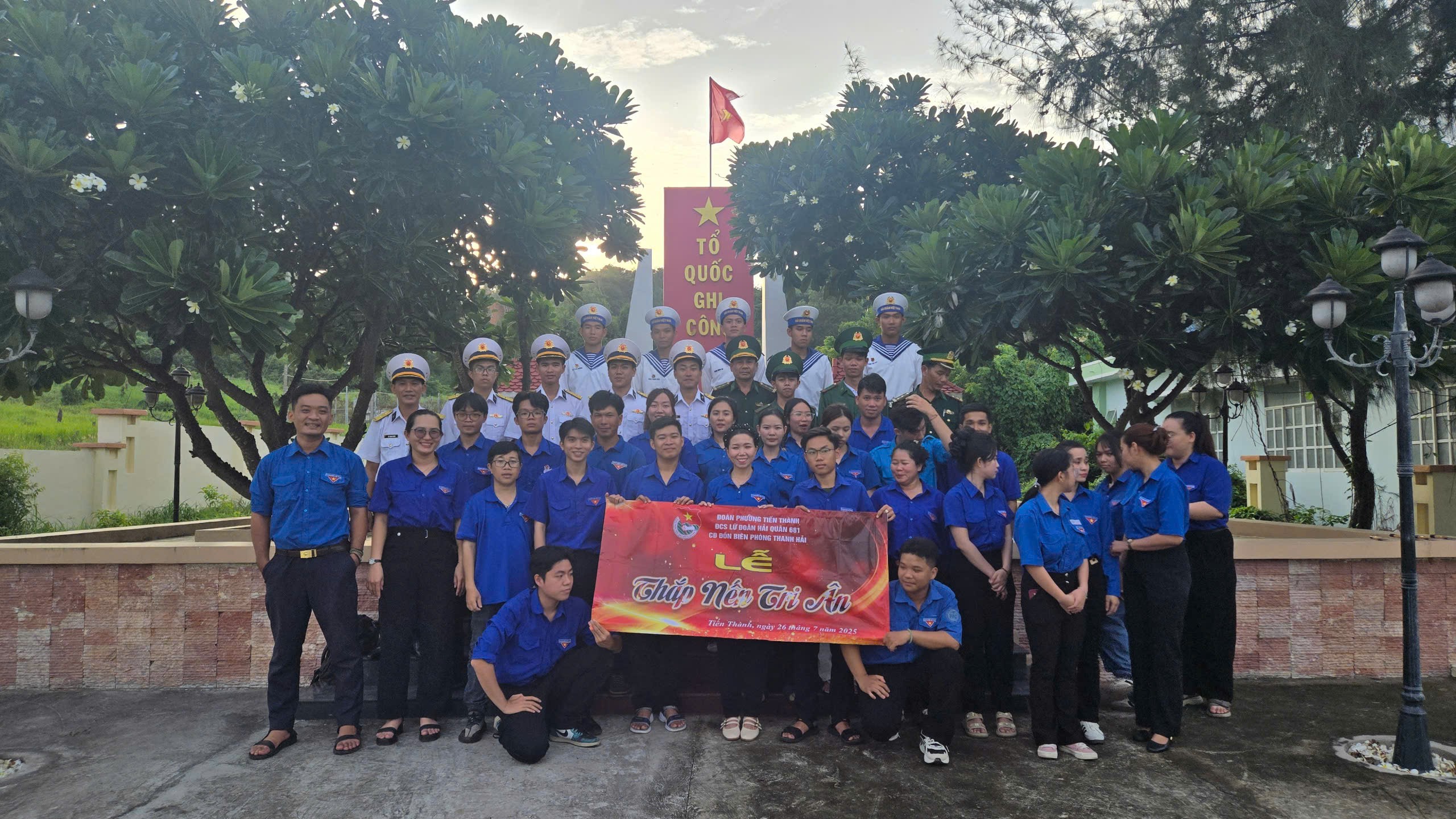 Cán bộ, đoàn viên Lữ đoàn 681 cùng đoàn phường Tiến Thành, tỉnh Lâm Đồng cũng tổ chức lễ thắp nến tri ân tại Bia ghi danh Tượng đài Liệt sĩ. Hình ảnh các đoàn viên, chiến sĩ Hải quân trẻ hòa mình cùng tuổi trẻ địa phương dâng hương, thắp nến, thành kính nghiêng mình trước anh linh các anh hùng liệt sĩ đã tạo nên một không gian linh thiêng, gắn kết tình quân – dân bền chặt và đầy xúc động.