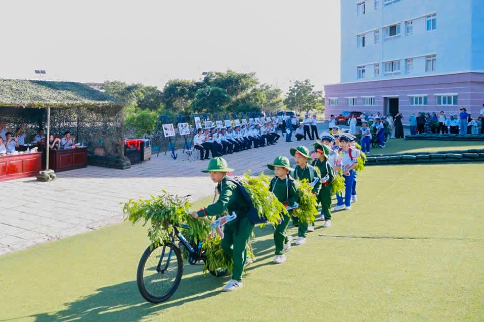 Mở đầu Ngày hội là Hội thi "Em tập làm chiến sĩ" diễn ra từ 07h00 đến 10h00. Đây không chỉ là một sân chơi vận động đơn thuần mà còn là một phương thức giáo dục trực quan, sinh động. Các "chiến sĩ nhí" đã được trải nghiệm thực tế qua các trạm mô phỏng hoạt động huấn luyện như "Trạm huấn luyện đội ngũ - Hành quân di chuyển", "Vượt chướng ngại vật", "Chiến đấu" và "Cứu thương, sơ tán". Những thử thách này không chỉ rèn luyện thể chất, sự khéo léo, tinh thần đồng đội mà quan trọng hơn, đã khơi gợi trong các em niềm tự hào về truyền thống cha anh, bước đầu hình thành ý thức về nhiệm vụ bảo vệ Tổ quốc. Việc trao huy chương "Chiến sĩ nhí" và hơn 1100 suất cơm nắm dã ngoại đã tiếp thêm động lực, niềm vui cho các em, thể hiện sự chăm chút tỉ mỉ, chu đáo của Ban Tổ chức.
